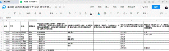 为方便及时统计学生的就业落实情况,英语系通过腾讯文档小程序要求全系老师们每周五之前更新教师版“本科教学工作周报”数据,除在线上课和毕业论文、实习进展情况之外,还专门设置了就业版块。