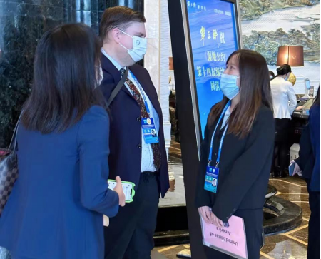 刘若彤(负责土库曼斯坦贸易代表团队):我所服务的土库曼斯坦贸易代表的母语是俄语,我所掌握的外语也只是英语,所以我也在有意控制自己的语速和用词,适当的时候辅以肢体动作。一切重要通知我都会在不同的俄文翻译软件当中来回互译反复确认,直至表达不会产生任何歧义再进行发送。
