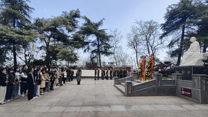 为缅怀革命先辈,传承革命精神,推动党的二十大精神学习宣传走深走实,充分用好武汉红色资源,pg娱乐电子游戏官网入口于2023年4月5日清明节组织学生到向警予烈士陵园开展清明节扫墓祭奠先烈活动,感受红色文化,接受思想洗礼,砥砺奋进之志。上午十时,学院学生党员代表、译术行者团队全体成员、团队指导老师姚夏晶、学院学生党建辅导员李海涵来到向警予烈士墓前,怀着对英烈的崇敬缅怀之情默哀鞠躬,敬献鲜花。