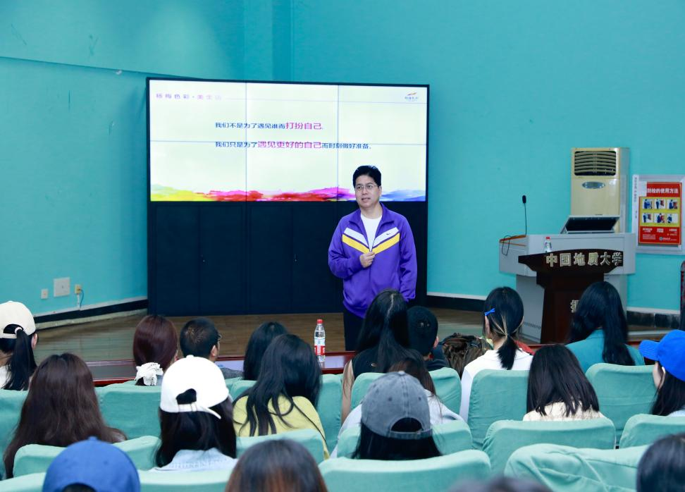 首先,王萍老师从自己的亲身经历开始,讲述了她对于美学的追求历程,然后从我们的日常护肤、面部色彩、化妆品的选择等方面详细展开,带我们更深入地了解了服装搭配的规则,得到了同学们的积极响应和热烈欢呼。