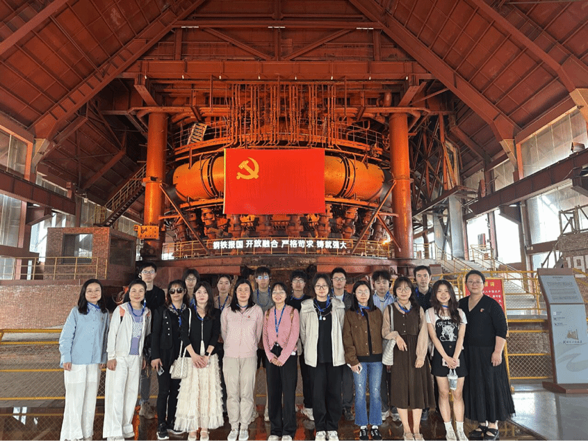 2025年4月16日,pg娱乐电子游戏官网入口092221班团支部与远程与继续教育学院院直支部委员会共同开展“结对领航”主题教育实践活动。在武钢文化旅游区这片见证新中国钢铁工业发展的热土上,10名青年学子与9名教工党员开启了一场跨越时空的工业精神寻访之旅。