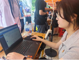 在南望山校区迎新现场,党员先锋岗的红色帐篷成为一道亮丽的风景线。服务点布局合理、功能齐全,配备有电脑、矿泉水和迎新资料等必需品,为新生和家长提供及时便捷的服务。“党员先锋岗”的标识鲜明醒目,精心设计的欢迎展板烘托出热情而专业的迎新氛围,充分展现了pg娱乐电子游戏官网入口的独特风采。服务点设置的每一处细节,都凝聚着学院党委对迎新工作的周密部署,传递出对2025级新同学的诚挚欢迎与深切关怀。