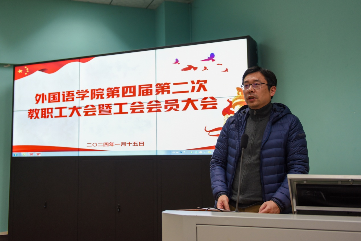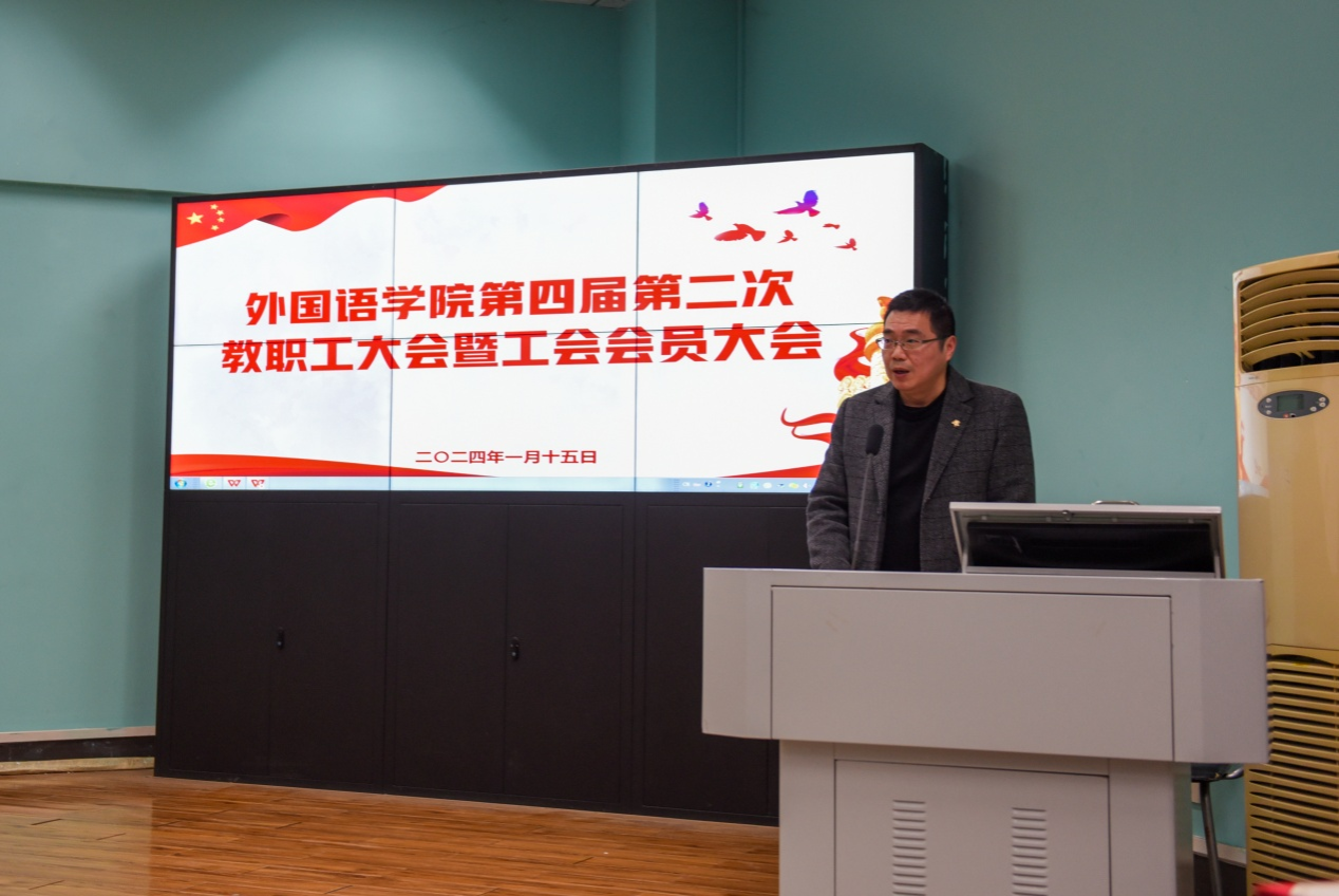(通讯员邹蔚鹤 摄影戴薇 严蕾)2024年1月15日,pg娱乐电子游戏官网入口第四届第二次教职工大会暨工会会员大会在北一楼学术报告厅隆重召开。学校党委副书记王甫出席大会并讲话。大会由院党委书记刘世勇主持。