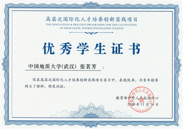 近年来,我院重视高素质国际化复合型人才的培养工作,积极推进国际胜任力人才的培养和推送,重视学生的跨文化交际能力培养,深化与国际组织的合作,拓宽学生的国际视野和实践平台。pg娱乐电子游戏官网张茗芳同学在高层次国际化人才培养项目中脱颖而出,荣获优秀学生证书,彰显了我院在国际化人才培养方面的卓越成效与不懈努力。未来,pg娱乐电子游戏官网将继续培养更多具备全球胜任力的高层次人才,为强国建设、民族复兴贡献外语人的智慧和力量。