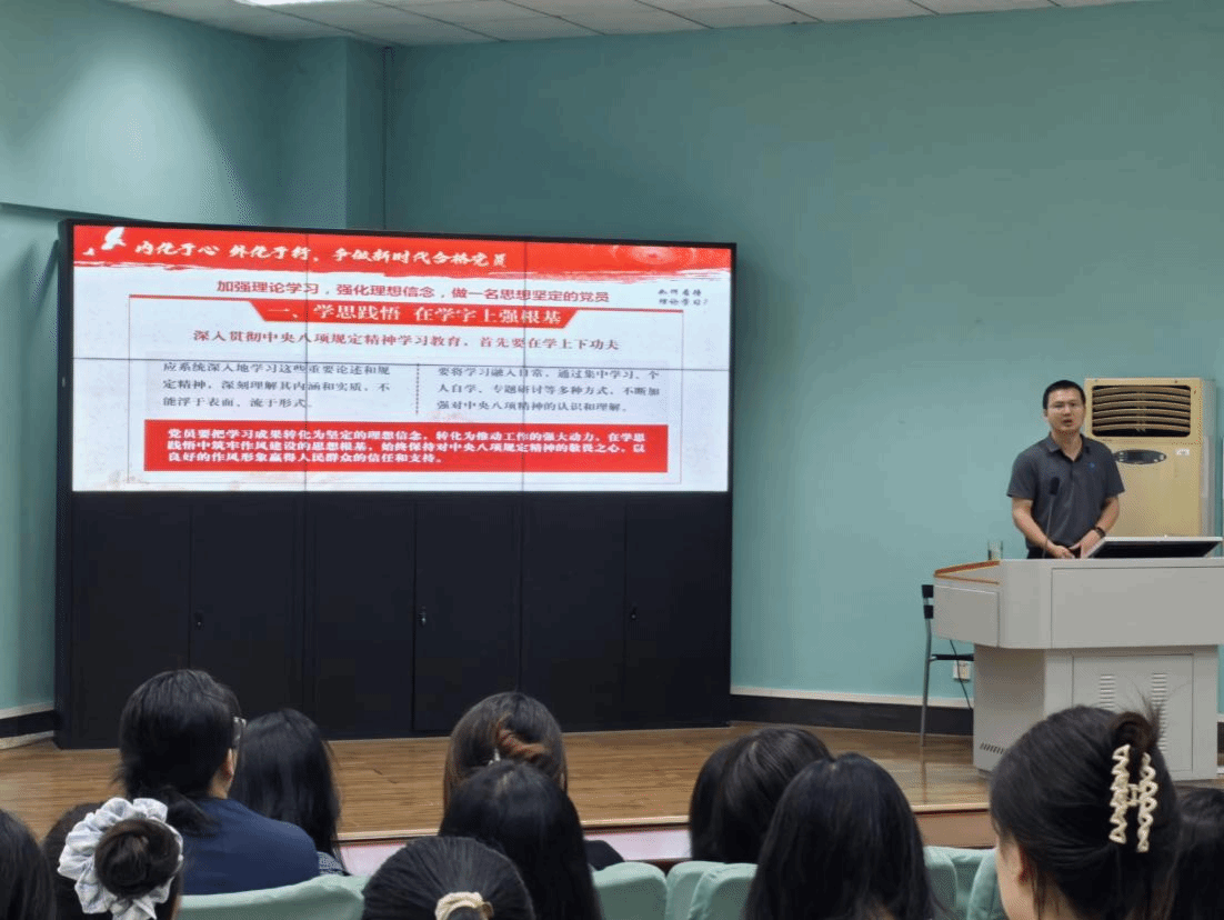 (通讯员 黎颖)为扎实推进深入贯彻中央八项规定精神学习教育,以“学”筑基来校准思想坐标,2025年5月26 日,pg娱乐电子游戏官网入口党委副书记余尚蔚以“深学细悟八项规定精神,争做新时代合格党员”为题给全体学生党员讲授专题党课。