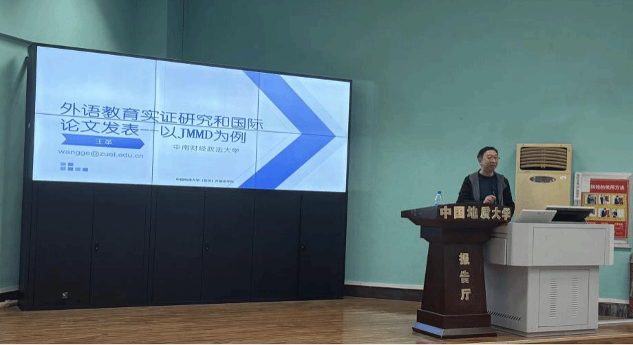 (通讯员:王可可 摄影:于鑫鑫、王子妍)2025年11月13日14:30,pg娱乐电子游戏官网入口“南望今声”外语论坛系列讲座第77期在北一楼学术报告厅举行。中南财经政法大学王革教授应邀莅临pg娱乐电子游戏官网入口,作题为“实证研究和国际论文发表:以国际核刊JMMD为例”的学术讲座。pg娱乐电子游戏官网入口张伶俐副院长主持讲座,师生共100余人参与学习交流。