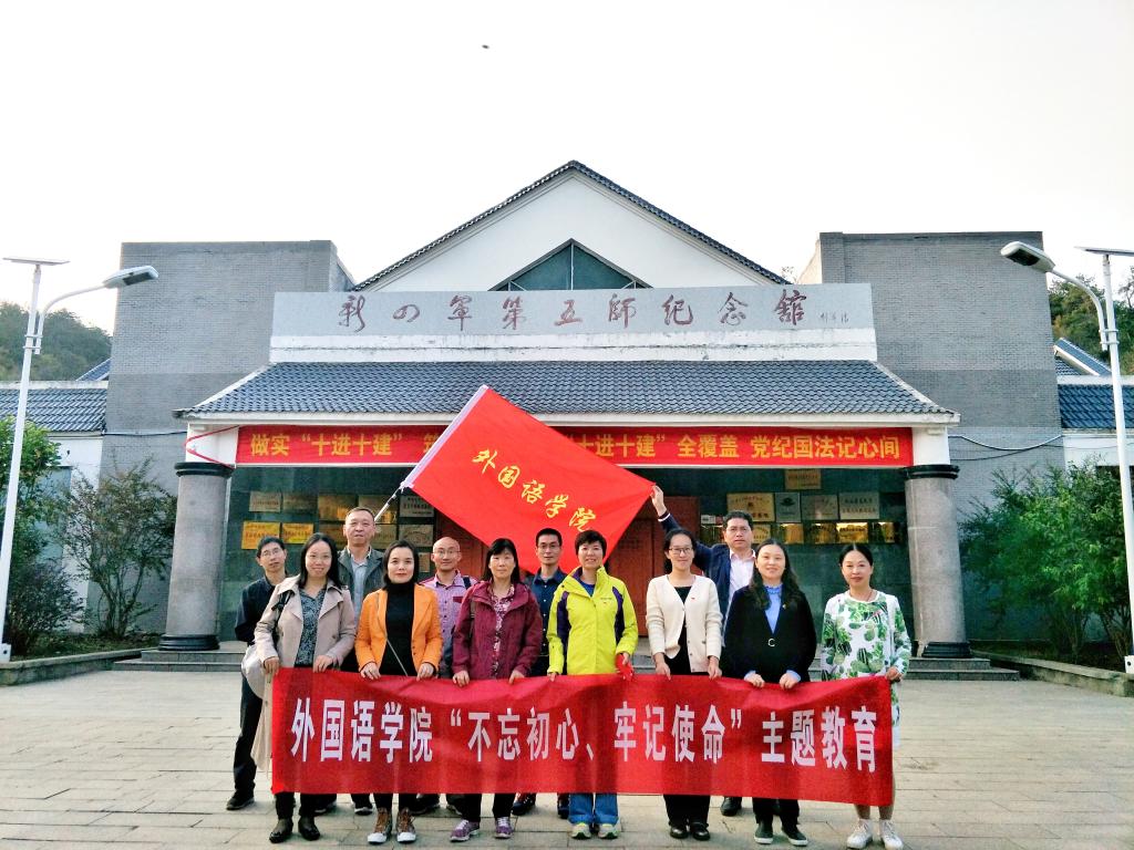 2019年11月9日上午8点,pg娱乐电子游戏官网入口领导班子及教工党支部支委一行12人乘车奔赴湖北大悟。上午首先到芳畈白果树湾参观全国百家经典红色实践基地之一的李先念新四军五师纪念馆、司令部旧址,瞻仰宋斌烈士墓。以李先念同志任师长兼政治委员的新四军第五师在此驻扎五年之久,依托大悟山天然屏障,部队由160人发展到5万余人,开辟了以白果树湾为中心,纵横千里的鄂豫皖湘赣五省的抗日根据地,大小战斗达1300余次,威震中原!