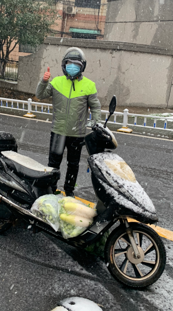 2月15日,大雨转雪。学校多个楼栋已经封控,许多老师的蔬菜等物资面临短缺困境。王老师得知情况,协同学院负责老师,帮助pg娱乐电子游戏官网封控楼栋的老师在线采购,并以志愿者身份冒雪将物资运送到各个小区,