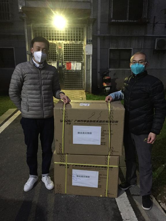 元月下旬,在武汉市医疗物资供应非常紧张的情况下,王国念老师争取其初中同学所在的广州万孚生物技术股份有限公司,向地大校医院定向捐赠甲流乙流快速检测试剂1000份,价值10万元,于1月29日代收并转交校工会。