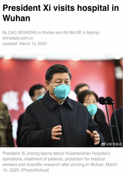张云霞老师首先在导入环节引入了China Daily 和VOA的两则最新新闻:“3月10日习总书记在武汉考察新冠肺炎疫情防控工作”、“武汉力争在3月10日左右实现方舱医院全休舱”。如此鼓舞人心的好消息非常具有针对性,也体现了新闻翻译的时效性,让学生们对回归武汉、回归地大充满信心,也一下子被吸引到了今天的翻译课堂!张老师通过对这两则新闻中出现的新词、缩略词、专有名词以及修辞手法的逐一讲解自然过渡到了本讲的重点:新闻词汇特点以及翻译方法。