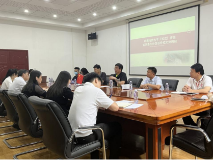 武汉市东湖生态旅游风景区崇文外国语学校校长张银华、副校长杨继唐等学校领导及部门负责人和教师代表,pg娱乐电子游戏官网副院长张伶俐、教师代表刘敏、辅导员邹蔚鹤及本研学生代表参加调研。